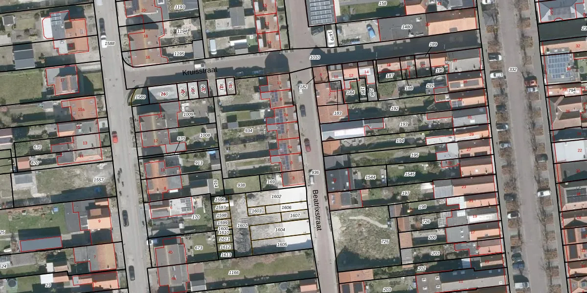 Beatrixstraat 5-a is gelegen op kadastraal perceel KGN00H934. Deze kadastrale aanduiding is uniek en wordt gebruikt door het Kadaster om eigendomsrechten en andere zakelijke rechten vast te leggen. Het perceel maakt onderdeel uit van de kadastrale gemeente Kortgene.