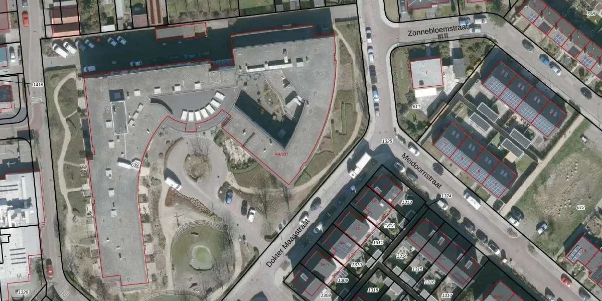 Het perceel waarop Dokter Maasstraat 4-225 staat heeft een oppervlakte van 8800 m². Dit is een zeer groot perceel. De perceeloppervlakte wordt geregistreerd door het Kadaster. Gedetailleerde informatie over de maten van dit perceel kunt u vinden in het rapport Kadastrale kaart met maatvoering van Dokter Maasstraat 4-225.