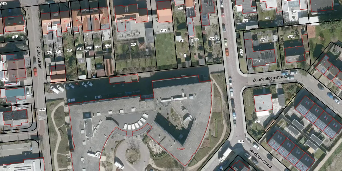 Het perceel waarop het adres ligt is KGN00-H-639. De afkorting 'KGN00' staat voor kadastrale gemeente Kortgene. Het perceel is 8800 m² groot. Dat is kleiner dan de gemiddelde perceeloppervlakte in Kortgene, dat op 1,3 ha ligt. Het kleinste perceel in de kadastrale gemeente is 0 m² groot. De grootste perceeloppervlakte is 21,63 km². Op het perceel zijn 89 adressen aanwezig. De laatste wijziging in het de Basisregistratie Kadaster (BRK) was op 12-01-2011.