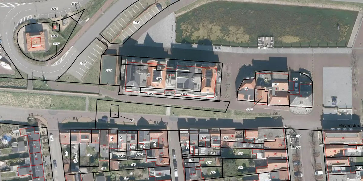 Het perceel waarop het adres ligt is KGN00-H-1495. De afkorting 'KGN00' staat voor kadastrale gemeente Kortgene. De gemiddelde perceelgrootte in Kortgene is 1,3 ha. Dit perceel is kleiner: de perceeloppervlakte bedraagt 595 m². Het kleinste perceel in de kadastrale gemeente is 0 m² groot. De grootste perceeloppervlakte is 21,63 km². Op het perceel liggen in totaal 13 adressen. In de Basisregistratie Kadaster (BRK) werden de grenzen van het perceel geregistreerd op 24-01-2022.