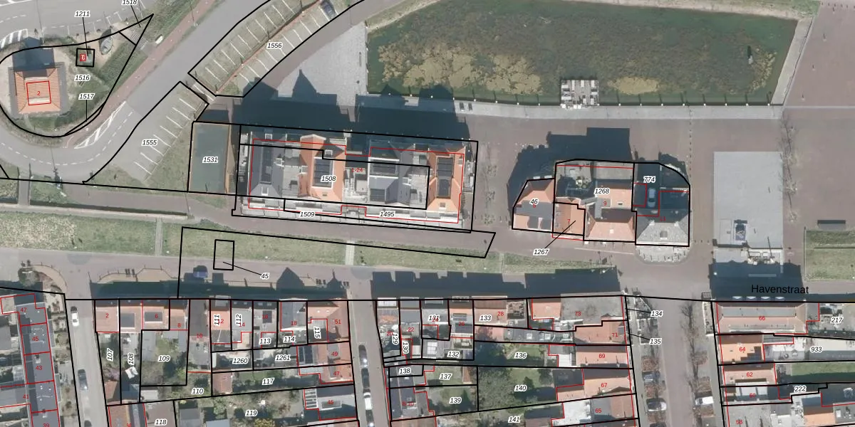 Het perceel waarop Oude Haven 15 staat heeft een oppervlakte van 595 m². Dit is een groot perceel. De perceeloppervlakte wordt geregistreerd door het Kadaster. Gedetailleerde informatie over de maten van dit perceel kunt u vinden in het rapport Kadastrale kaart met maatvoering van Oude Haven 15.