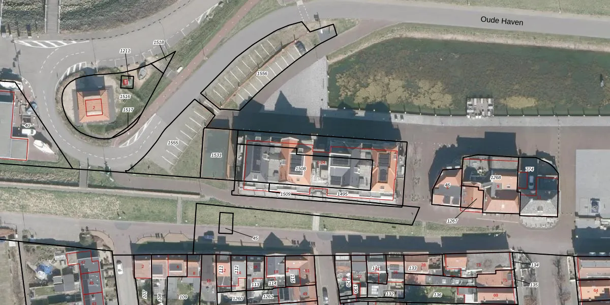 Het perceel waarop Oude Haven 9 staat heeft een oppervlakte van 595 m². Dit is een groot perceel. De perceeloppervlakte wordt geregistreerd door het Kadaster. Gedetailleerde informatie over de maten van dit perceel kunt u vinden in het rapport Kadastrale kaart met maatvoering van Oude Haven 9.