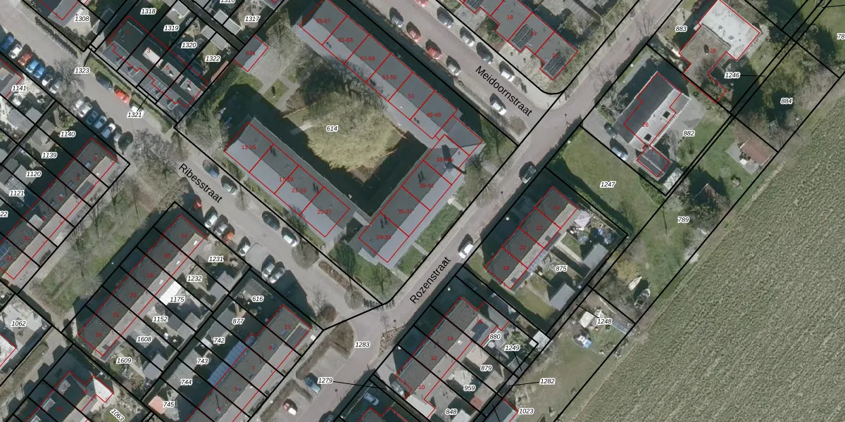 Het perceel waarop Rozenstraat 37 staat heeft een oppervlakte van 3255 m². Dit is een zeer groot perceel. De perceeloppervlakte wordt geregistreerd door het Kadaster. Gedetailleerde informatie over de maten van dit perceel kunt u vinden in het rapport Kadastrale kaart met maatvoering van Rozenstraat 37.
