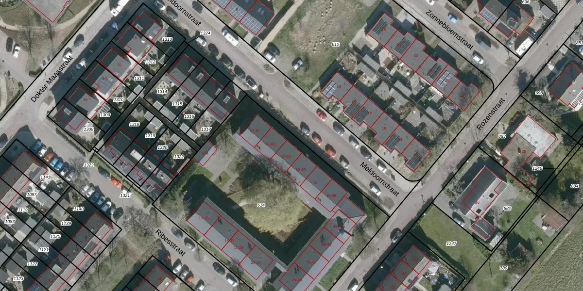 Het perceel waarop Rozenstraat 59 staat heeft een oppervlakte van 3255 m². Dit is een zeer groot perceel. De perceeloppervlakte wordt geregistreerd door het Kadaster. Gedetailleerde informatie over de maten van dit perceel kunt u vinden in het rapport Kadastrale kaart met maatvoering van Rozenstraat 59.