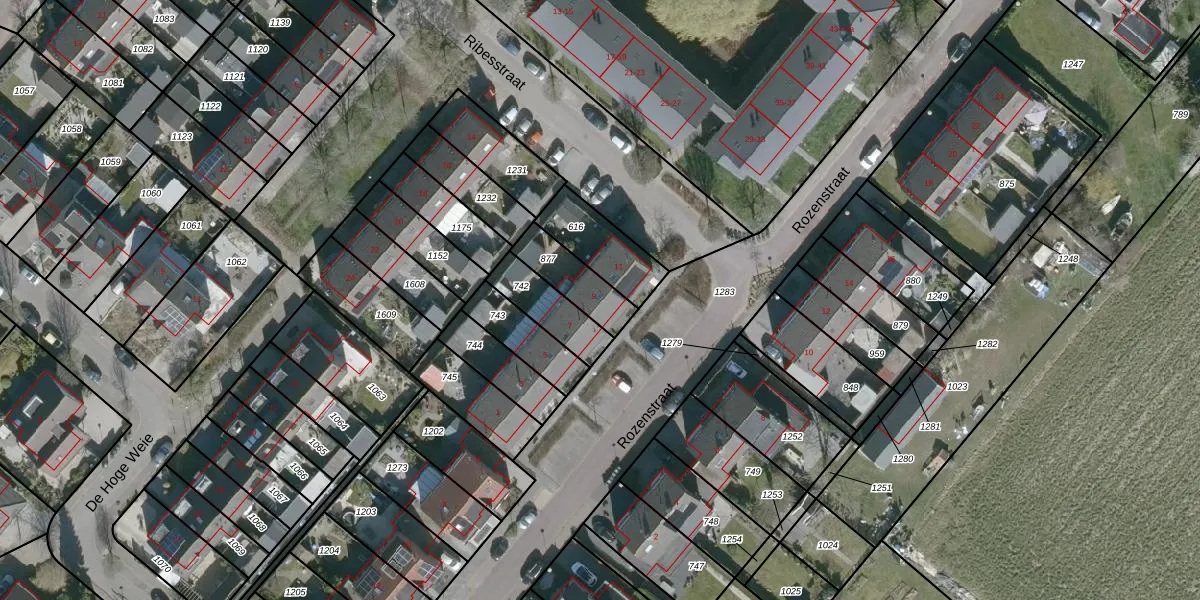 Gebruik de zoekbalk of klik op een perceel voor informatie over de adressen binnen dit perceel.