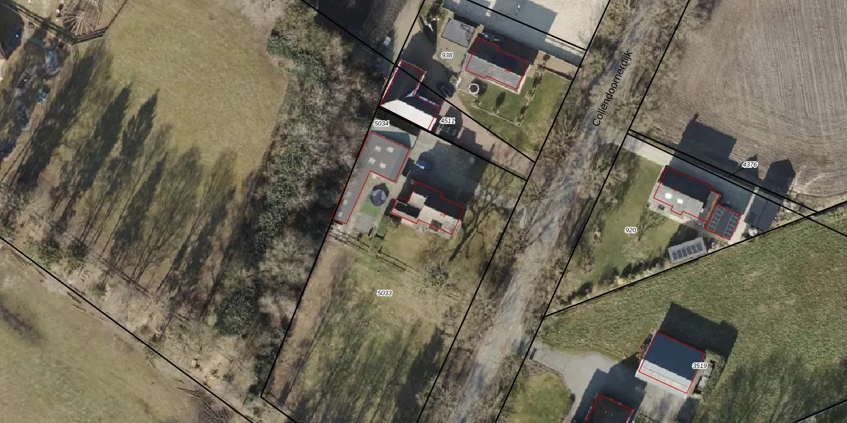 Het perceel waarop Collendoornerdijk 16 staat heeft een oppervlakte van 2924 m². Dit is een zeer groot perceel. De perceeloppervlakte wordt geregistreerd door het Kadaster. Gedetailleerde informatie over de maten van dit perceel kunt u vinden in het rapport Kadastrale kaart met maatvoering van Collendoornerdijk 16.
