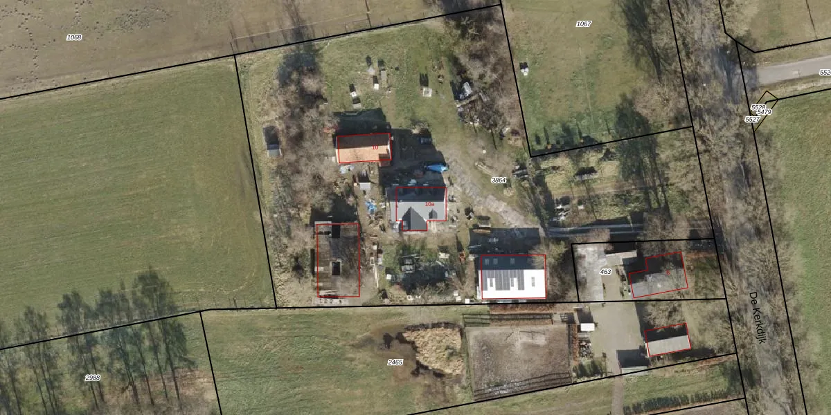 Het perceel waarop De Kerkdijk 10-a staat heeft een oppervlakte van 5580 m². Dit is een zeer groot perceel. De perceeloppervlakte wordt geregistreerd door het Kadaster. Gedetailleerde informatie over de maten van dit perceel kunt u vinden in het rapport Kadastrale kaart met maatvoering van De Kerkdijk 10-a.