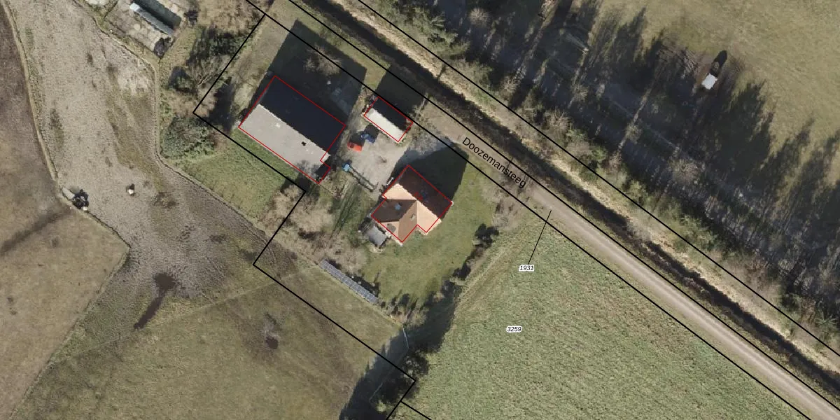 Het perceel waarop Doozemansteeg 2-I staat heeft een oppervlakte van 9050 m². Dit is een zeer groot perceel. De perceeloppervlakte wordt geregistreerd door het Kadaster. Gedetailleerde informatie over de maten van dit perceel kunt u vinden in het rapport Kadastrale kaart met maatvoering van Doozemansteeg 2-I.