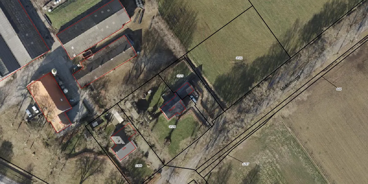 Middenweg 2-a-i is gelegen op kadastraal perceel HDB01O3723. Deze kadastrale aanduiding is uniek en wordt gebruikt door het Kadaster om eigendomsrechten en andere zakelijke rechten vast te leggen. Het perceel maakt onderdeel uit van de kadastrale gemeente Ambt-Hardenberg.