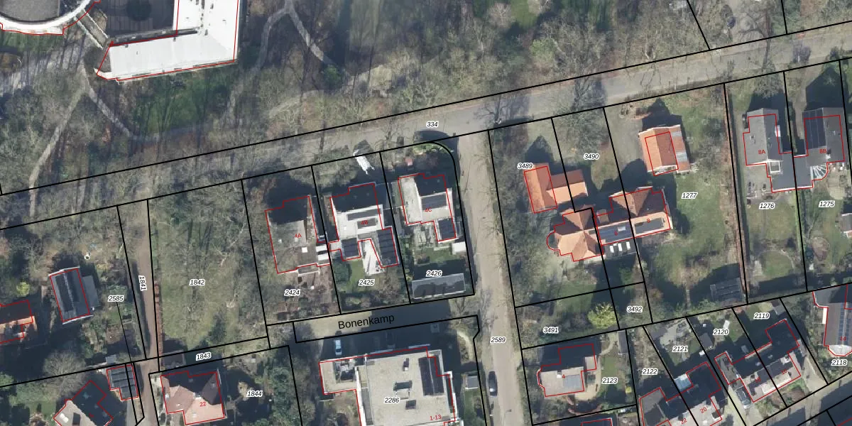 Gebruik de zoekbalk of klik op een perceel voor informatie over de adressen binnen dit perceel.