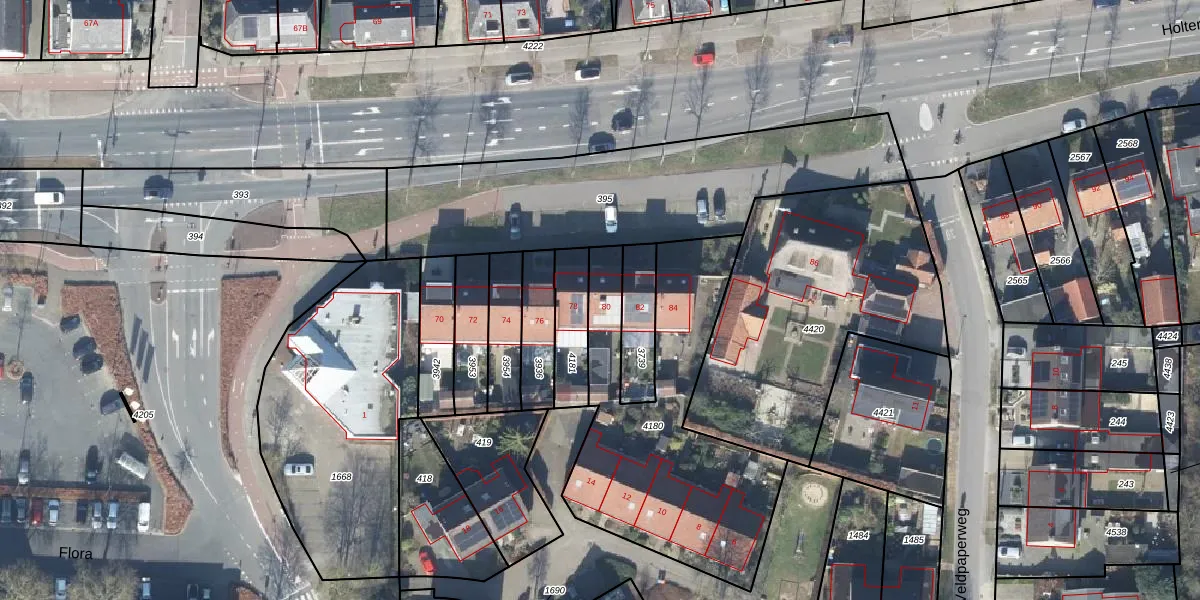 Het perceel waarop Holterweg 80 staat heeft een oppervlakte van 1170 m². Dit is een zeer groot perceel. De perceeloppervlakte wordt geregistreerd door het Kadaster. Gedetailleerde informatie over de maten van dit perceel kunt u vinden in het rapport Kadastrale kaart met maatvoering van Holterweg 80.