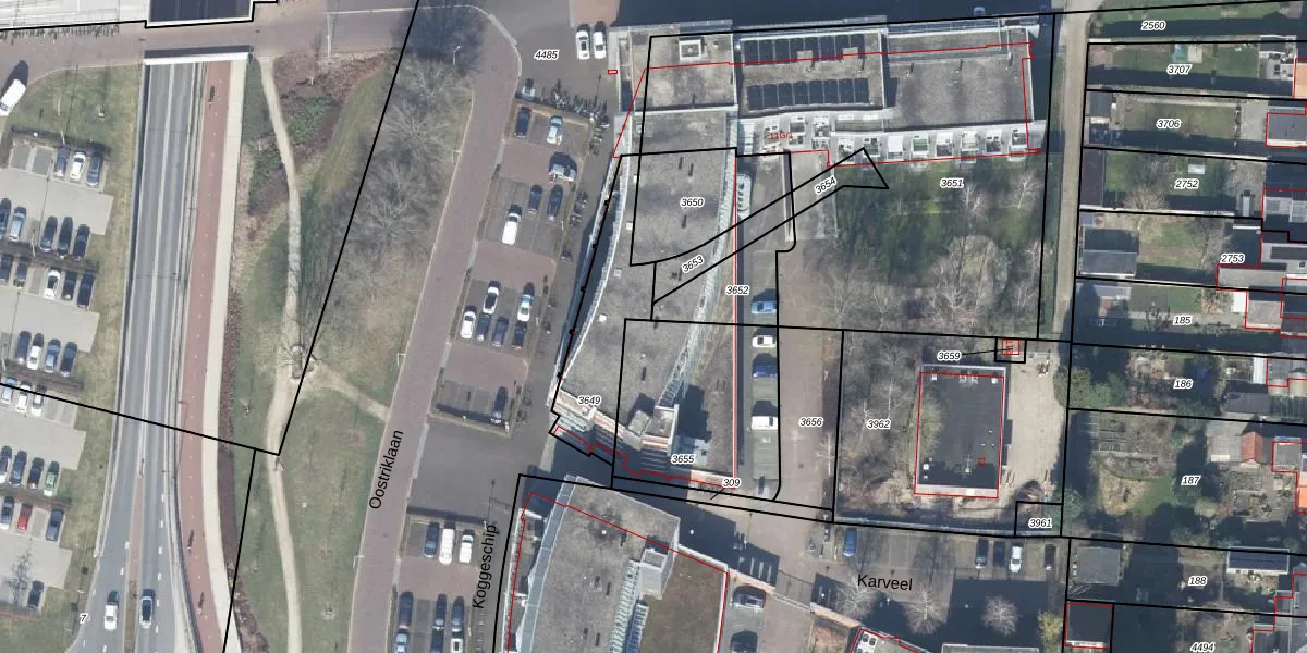 Het perceel waarop Karveel 39 staat heeft een oppervlakte van 623 m². Dit is een groot perceel. De perceeloppervlakte wordt geregistreerd door het Kadaster. Gedetailleerde informatie over de maten van dit perceel kunt u vinden in het rapport Kadastrale kaart met maatvoering van Karveel 39.
