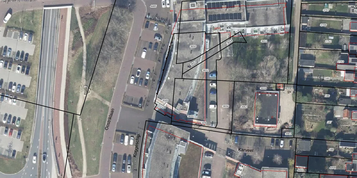 Het perceel waarop Karveel 41 staat heeft een oppervlakte van 623 m². Dit is een groot perceel. De perceeloppervlakte wordt geregistreerd door het Kadaster. Gedetailleerde informatie over de maten van dit perceel kunt u vinden in het rapport Kadastrale kaart met maatvoering van Karveel 41.
