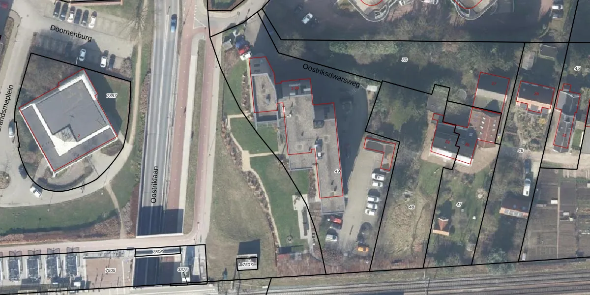 Oostriksdwarsweg 8 is gelegen op kadastraal perceel DVT00L49. Deze kadastrale aanduiding is uniek en wordt gebruikt door het Kadaster om eigendomsrechten en andere zakelijke rechten vast te leggen. Het perceel maakt onderdeel uit van de kadastrale gemeente Deventer.