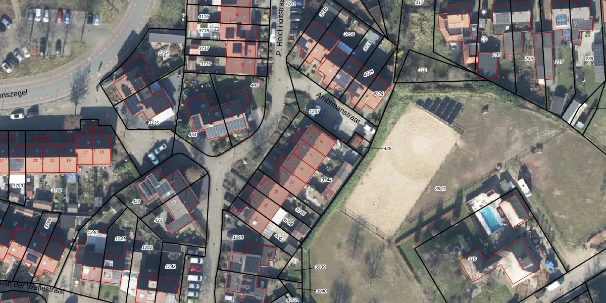 Het perceel waarop P. Reichholtstraat 7 staat heeft een oppervlakte van 630 m². Dit is een groot perceel. De perceeloppervlakte wordt geregistreerd door het Kadaster. Gedetailleerde informatie over de maten van dit perceel kunt u vinden in het rapport Kadastrale kaart met maatvoering van P. Reichholtstraat 7.