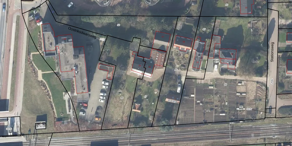Het perceel waarop Stationsweg 25 staat heeft een oppervlakte van 885 m². Dit is een groot perceel. De perceeloppervlakte wordt geregistreerd door het Kadaster. Gedetailleerde informatie over de maten van dit perceel kunt u vinden in het rapport Kadastrale kaart met maatvoering van Stationsweg 25.