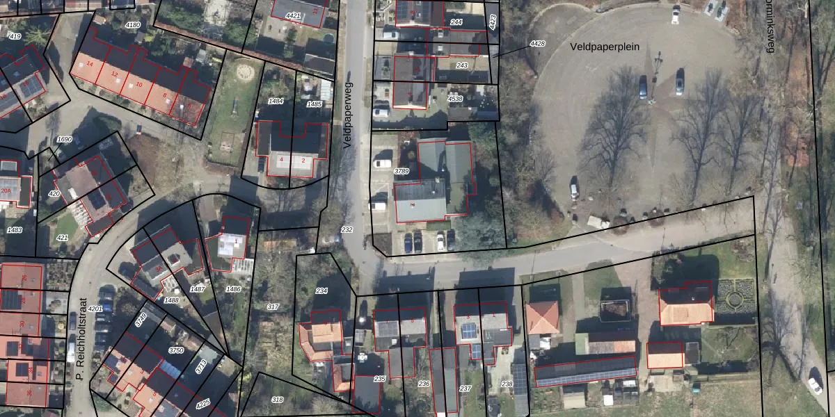 Het perceel waarop Veldpaperweg 2 staat heeft een oppervlakte van 940 m². Dit is een groot perceel. De perceeloppervlakte wordt geregistreerd door het Kadaster. Gedetailleerde informatie over de maten van dit perceel kunt u vinden in het rapport Kadastrale kaart met maatvoering van Veldpaperweg 2.