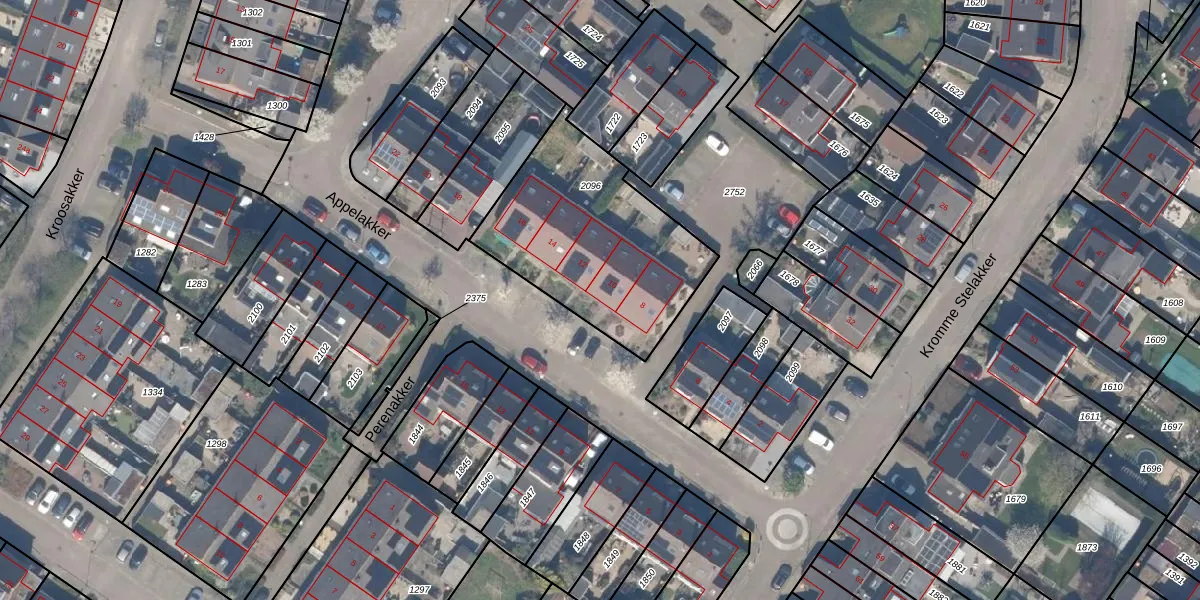 Het perceel waarop Appelakker 10 staat heeft een oppervlakte van 845 m². Dit is een groot perceel. De perceeloppervlakte wordt geregistreerd door het Kadaster. Gedetailleerde informatie over de maten van dit perceel kunt u vinden in het rapport Kadastrale kaart met maatvoering van Appelakker 10.