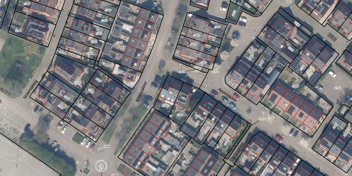 Gebruik de zoekbalk of klik op een perceel voor informatie over de adressen binnen dit perceel.