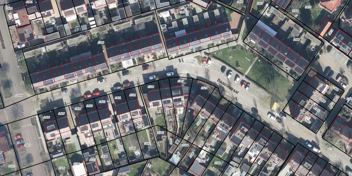 Het perceel waarop Beatrixstraat 37 staat heeft een oppervlakte van 255 m². Dit is een middelgroot perceel. De perceeloppervlakte wordt geregistreerd door het Kadaster. Gedetailleerde informatie over de maten van dit perceel kunt u vinden in het rapport Kadastrale kaart met maatvoering van Beatrixstraat 37.