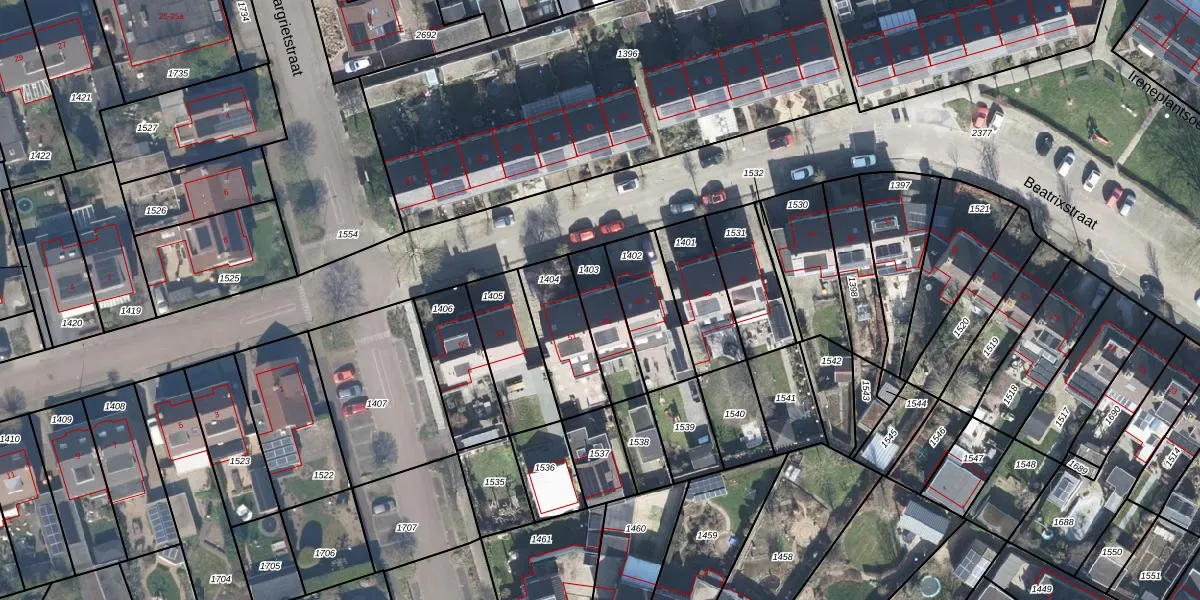 Het perceel waarop Beatrixstraat 49 staat heeft een oppervlakte van 158 m². Dit is een middelgroot perceel. De perceeloppervlakte wordt geregistreerd door het Kadaster. Gedetailleerde informatie over de maten van dit perceel kunt u vinden in het rapport Kadastrale kaart met maatvoering van Beatrixstraat 49.