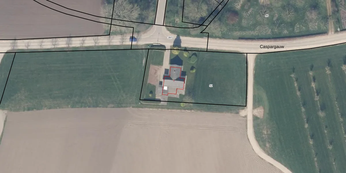 Caspargauw 1 is gelegen op kadastraal perceel CTN00D51. Deze kadastrale aanduiding is uniek en wordt gebruikt door het Kadaster om eigendomsrechten en andere zakelijke rechten vast te leggen. Het perceel maakt onderdeel uit van de kadastrale gemeente Cothen.