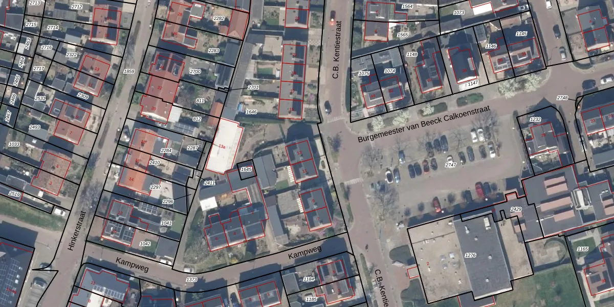 Het perceel waarop C.B. Kentiestraat 13 staat heeft een oppervlakte van 3871 m². Dit is een zeer groot perceel. De perceeloppervlakte wordt geregistreerd door het Kadaster. Gedetailleerde informatie over de maten van dit perceel kunt u vinden in het rapport Kadastrale kaart met maatvoering van C.B. Kentiestraat 13.