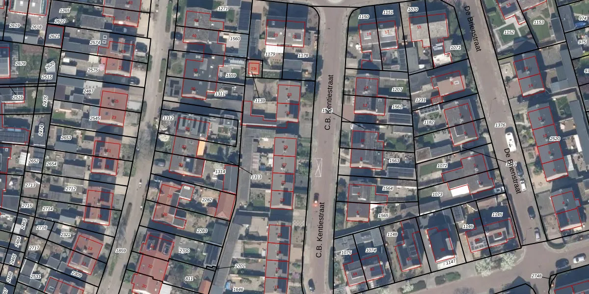 Het perceel waarop C.B. Kentiestraat 29 staat heeft een oppervlakte van 3871 m². Dit is een zeer groot perceel. De perceeloppervlakte wordt geregistreerd door het Kadaster. Gedetailleerde informatie over de maten van dit perceel kunt u vinden in het rapport Kadastrale kaart met maatvoering van C.B. Kentiestraat 29.