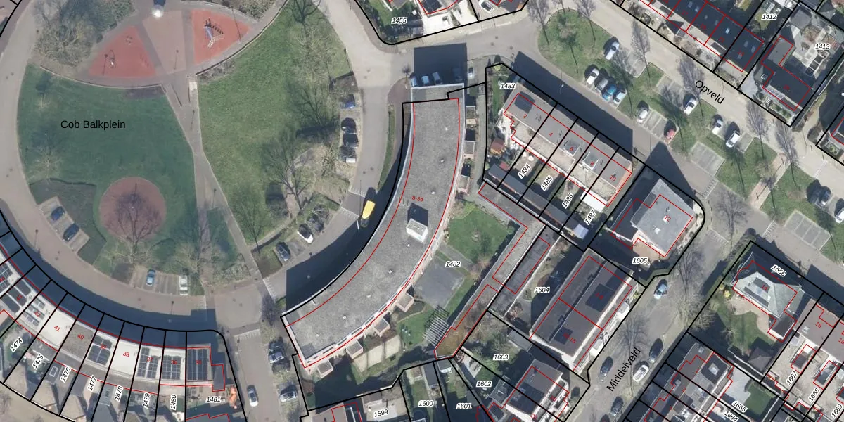 Het perceel waarop Cob Balkplein 20 staat heeft een oppervlakte van 2282 m². Dit is een zeer groot perceel. De perceeloppervlakte wordt geregistreerd door het Kadaster. Gedetailleerde informatie over de maten van dit perceel kunt u vinden in het rapport Kadastrale kaart met maatvoering van Cob Balkplein 20.