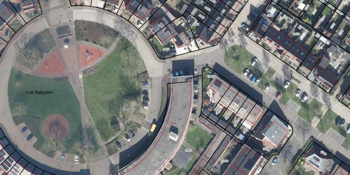 Het perceel waarop Cob Balkplein 26 staat heeft een oppervlakte van 2282 m². Dit is een zeer groot perceel. De perceeloppervlakte wordt geregistreerd door het Kadaster. Gedetailleerde informatie over de maten van dit perceel kunt u vinden in het rapport Kadastrale kaart met maatvoering van Cob Balkplein 26.