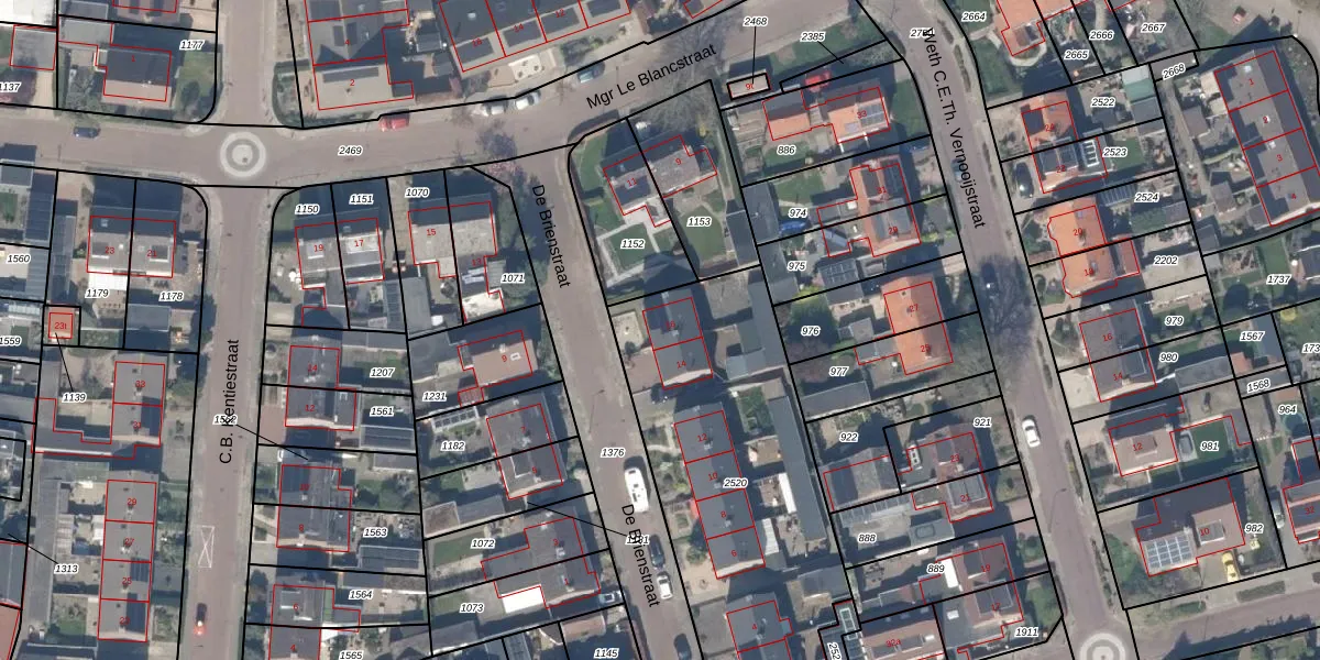 Het perceel waarop De Brienstraat 16 staat heeft een oppervlakte van 1470 m². Dit is een zeer groot perceel. De perceeloppervlakte wordt geregistreerd door het Kadaster. Gedetailleerde informatie over de maten van dit perceel kunt u vinden in het rapport Kadastrale kaart met maatvoering van De Brienstraat 16.
