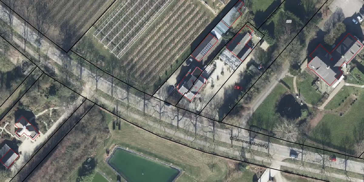 Het perceel waarop Groenewoudseweg 9 staat heeft een oppervlakte van 2980 m². Dit is een zeer groot perceel. De perceeloppervlakte wordt geregistreerd door het Kadaster. Gedetailleerde informatie over de maten van dit perceel kunt u vinden in het rapport Kadastrale kaart met maatvoering van Groenewoudseweg 9.