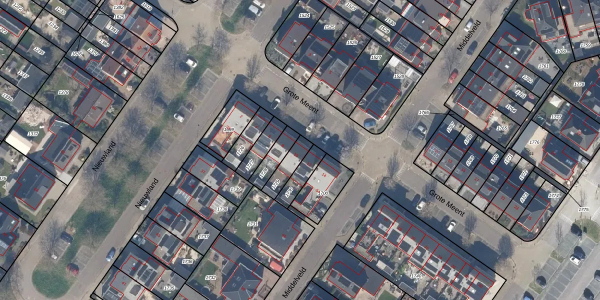Gebruik de zoekbalk of klik op een perceel voor informatie over de adressen binnen dit perceel.