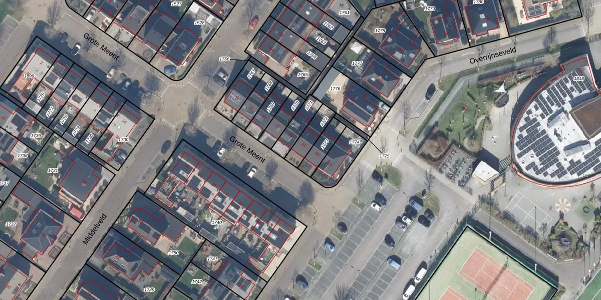 Gebruik de zoekbalk of klik op een perceel voor informatie over de adressen binnen dit perceel.
