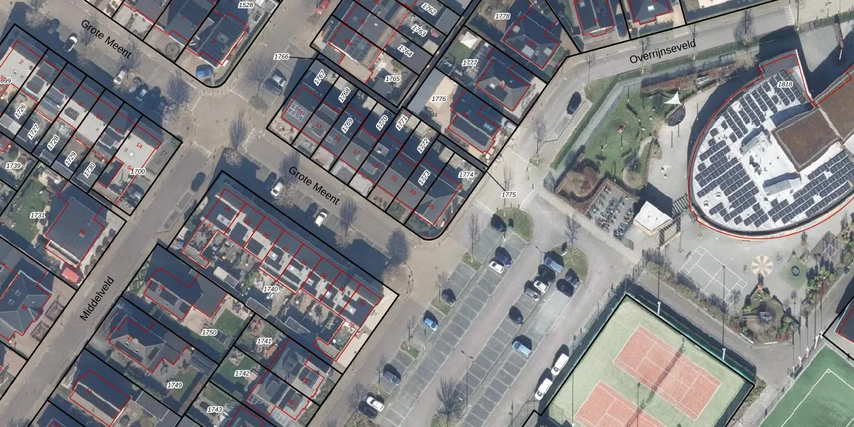 Het perceel waarop Grote Meent 25 staat heeft een oppervlakte van 174 m². Dit is een middelgroot perceel. De perceeloppervlakte wordt geregistreerd door het Kadaster. Gedetailleerde informatie over de maten van dit perceel kunt u vinden in het rapport Kadastrale kaart met maatvoering van Grote Meent 25.
