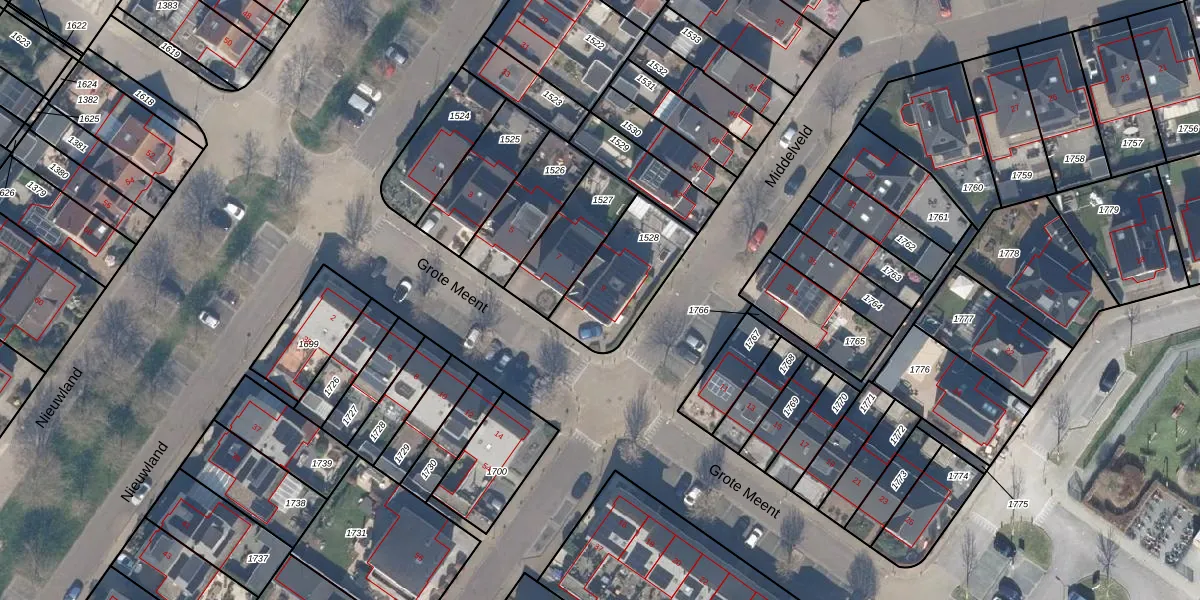 Het perceel waarop Grote Meent 9 staat heeft een oppervlakte van 316 m². Dit is een groot perceel. De perceeloppervlakte wordt geregistreerd door het Kadaster. Gedetailleerde informatie over de maten van dit perceel kunt u vinden in het rapport Kadastrale kaart met maatvoering van Grote Meent 9.