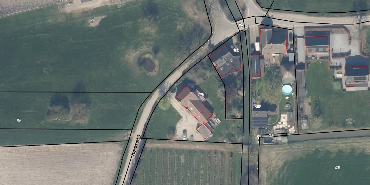 Hoeksedijk 1 is gelegen op kadastraal perceel CTN00D159. Deze kadastrale aanduiding is uniek en wordt gebruikt door het Kadaster om eigendomsrechten en andere zakelijke rechten vast te leggen. Het perceel maakt onderdeel uit van de kadastrale gemeente Cothen.