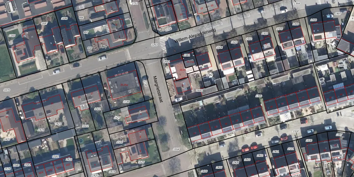 Gebruik de zoekbalk of klik op een perceel voor informatie over de adressen binnen dit perceel.
