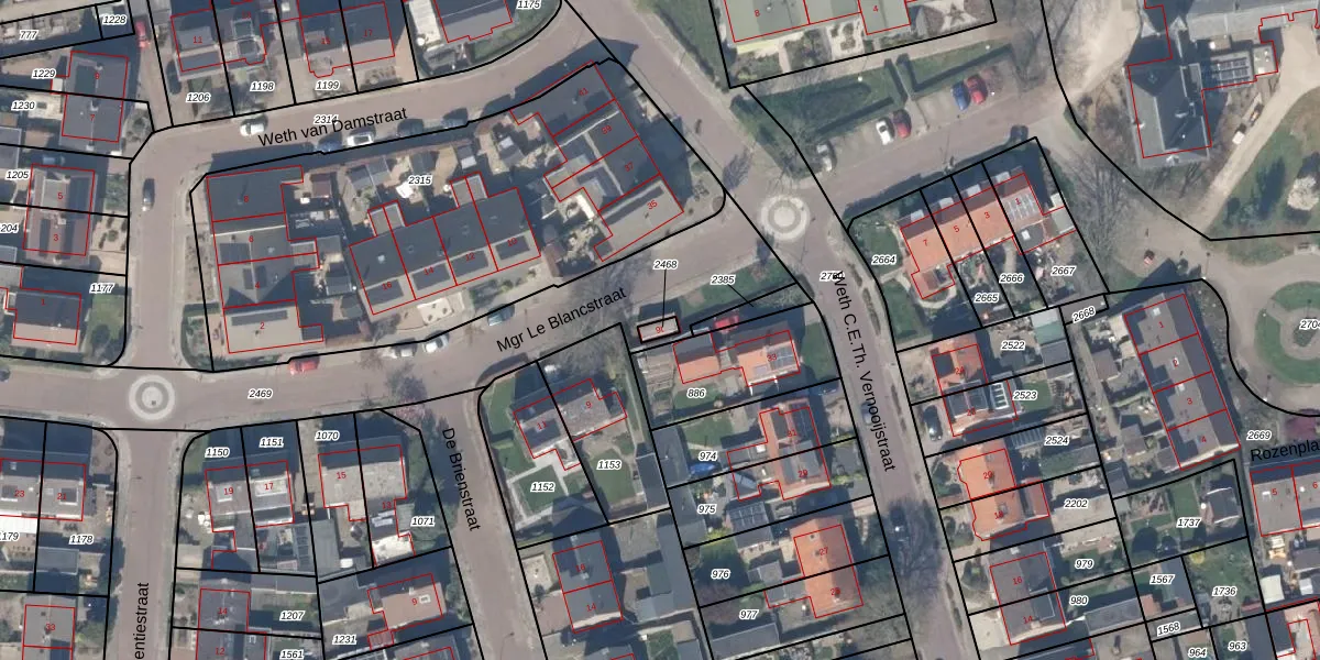 Mgr Le Blancstraat 9-t is gelegen op kadastraal perceel CTN00B2468. Deze kadastrale aanduiding is uniek en wordt gebruikt door het Kadaster om eigendomsrechten en andere zakelijke rechten vast te leggen. Het perceel maakt onderdeel uit van de kadastrale gemeente Cothen.