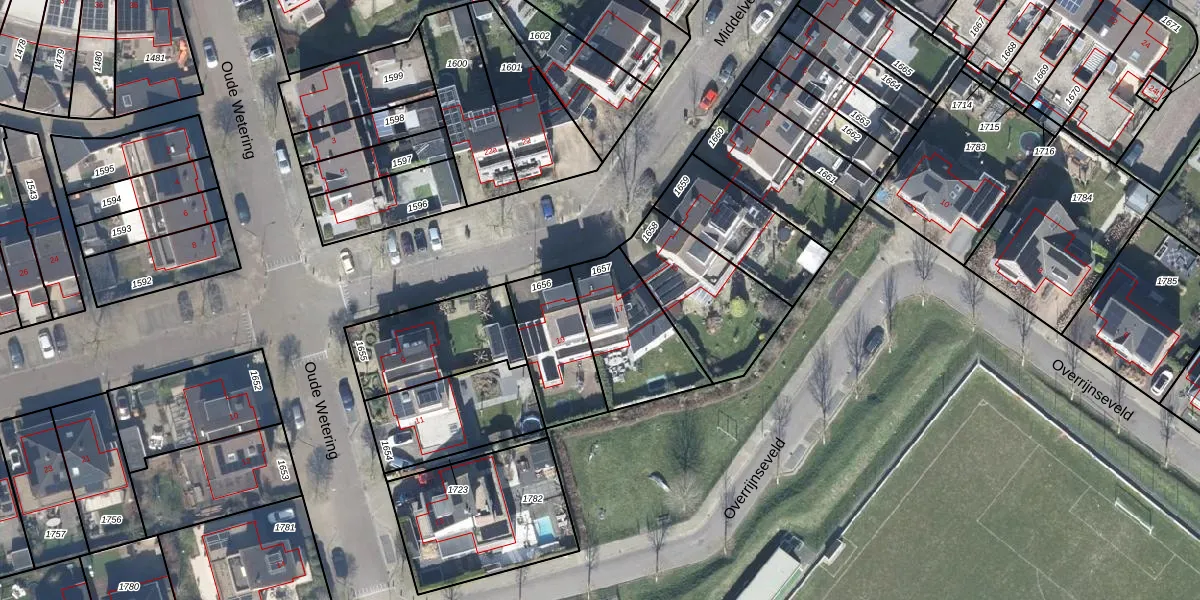 Het perceel waarop Middelveld 17 staat heeft een oppervlakte van 345 m². Dit is een groot perceel. De perceeloppervlakte wordt geregistreerd door het Kadaster. Gedetailleerde informatie over de maten van dit perceel kunt u vinden in het rapport Kadastrale kaart met maatvoering van Middelveld 17.
