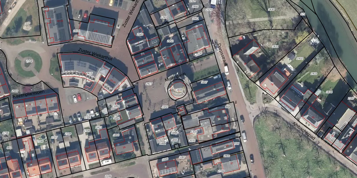Het perceel waarop Molenplein 1 staat heeft een oppervlakte van 99 m². Dit is een klein perceel. De perceeloppervlakte wordt geregistreerd door het Kadaster. Gedetailleerde informatie over de maten van dit perceel kunt u vinden in het rapport Kadastrale kaart met maatvoering van Molenplein 1.
