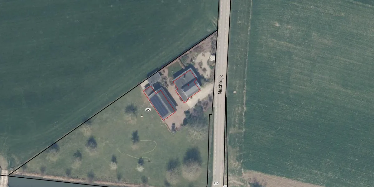 Het perceel waarop Nachtdijk 2 staat heeft een oppervlakte van 4775 m². Dit is een zeer groot perceel. De perceeloppervlakte wordt geregistreerd door het Kadaster. Gedetailleerde informatie over de maten van dit perceel kunt u vinden in het rapport Kadastrale kaart met maatvoering van Nachtdijk 2.