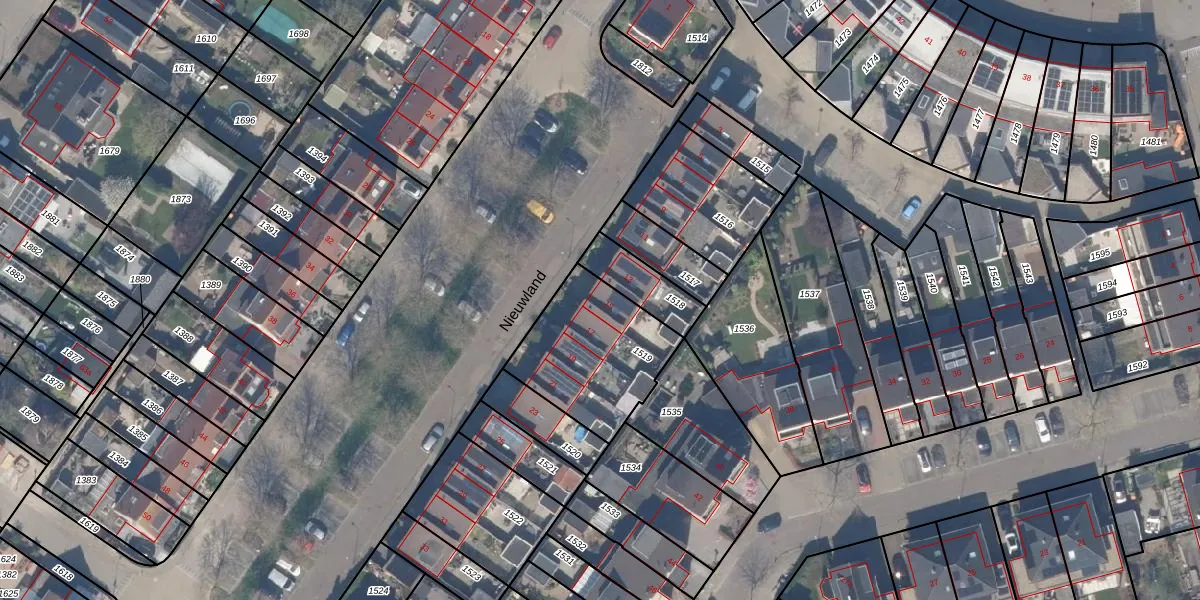 Het perceel waarop Nieuwland 15 staat heeft een oppervlakte van 475 m². Dit is een groot perceel. De perceeloppervlakte wordt geregistreerd door het Kadaster. Gedetailleerde informatie over de maten van dit perceel kunt u vinden in het rapport Kadastrale kaart met maatvoering van Nieuwland 15.