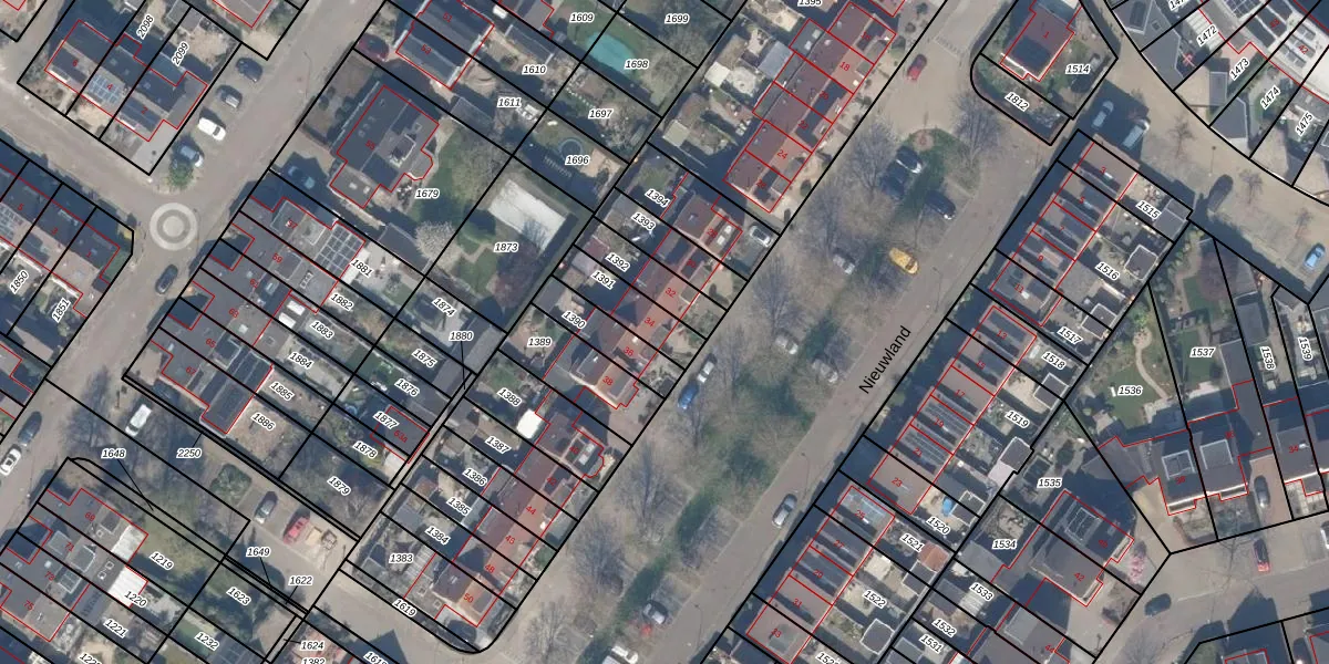 Het perceel waarop Nieuwland 34 staat heeft een oppervlakte van 132 m². Dit is een middelgroot perceel. De perceeloppervlakte wordt geregistreerd door het Kadaster. Gedetailleerde informatie over de maten van dit perceel kunt u vinden in het rapport Kadastrale kaart met maatvoering van Nieuwland 34.