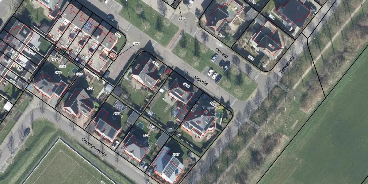 Het perceel waarop Opveld 28 staat heeft een oppervlakte van 615 m². Dit is een groot perceel. De perceeloppervlakte wordt geregistreerd door het Kadaster. Gedetailleerde informatie over de maten van dit perceel kunt u vinden in het rapport Kadastrale kaart met maatvoering van Opveld 28.