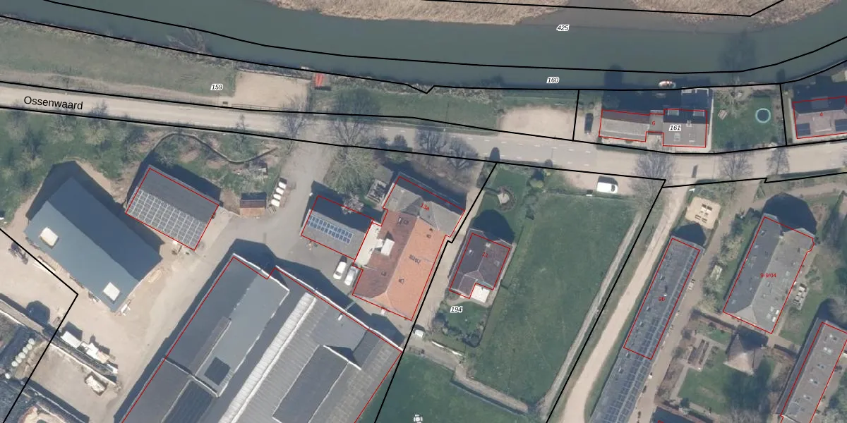Het perceel waarop Ossenwaard 13-a staat heeft een oppervlakte van 23,2 ha. Dit is een zeer groot perceel. De perceeloppervlakte wordt geregistreerd door het Kadaster. Gedetailleerde informatie over de maten van dit perceel kunt u vinden in het rapport Kadastrale kaart met maatvoering van Ossenwaard 13-a.