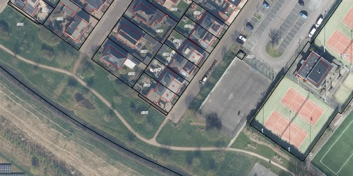 Overrijnseveld 36 is gelegen op kadastraal perceel CTN00A1745. Deze kadastrale aanduiding is uniek en wordt gebruikt door het Kadaster om eigendomsrechten en andere zakelijke rechten vast te leggen. Het perceel maakt onderdeel uit van de kadastrale gemeente Cothen.