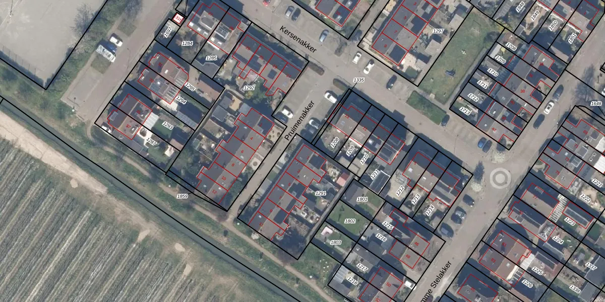 Het perceel waarop Pruimenakker 1 staat heeft een oppervlakte van 830 m². Dit is een groot perceel. De perceeloppervlakte wordt geregistreerd door het Kadaster. Gedetailleerde informatie over de maten van dit perceel kunt u vinden in het rapport Kadastrale kaart met maatvoering van Pruimenakker 1.