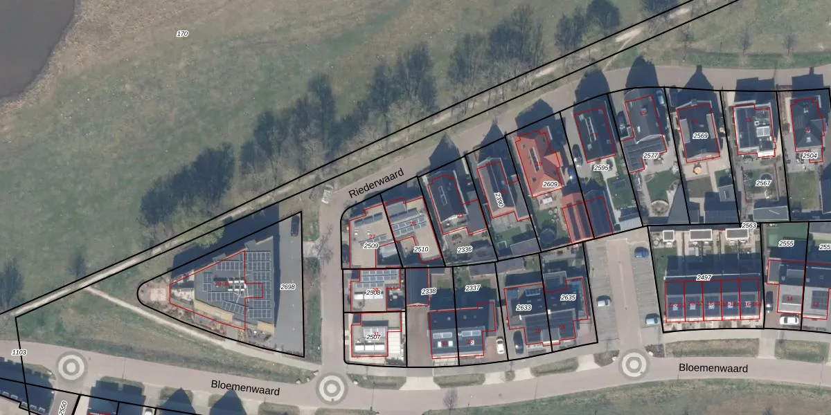 Gebruik de zoekbalk of klik op een perceel voor informatie over de adressen binnen dit perceel.