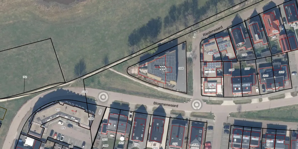 Het perceel waarop Riederwaard 38 staat heeft een oppervlakte van 814 m². Dit is een groot perceel. De perceeloppervlakte wordt geregistreerd door het Kadaster. Gedetailleerde informatie over de maten van dit perceel kunt u vinden in het rapport Kadastrale kaart met maatvoering van Riederwaard 38.
